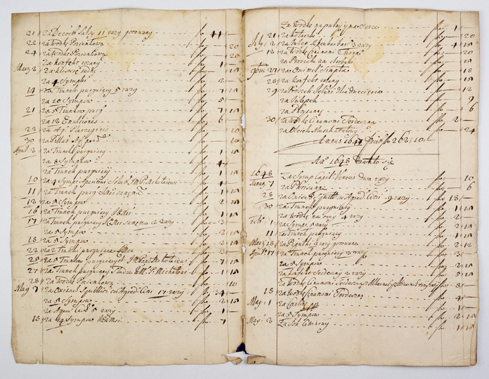 [FARMACJA, rękopis]. Odręcznie sporządzony wykaz stosowanych w l. 1647-1652 przez sekretarza królewskiego Hieronima Pinocciego środków leczniczych i ich cen.