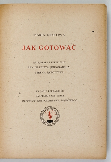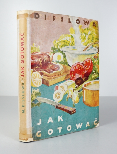 DISSLOWA Marja – Jak gotować. Praktyczny podręcznik kucharstwa. Poradnik we wszelkich sprawach odżywiania, zestawiania menu, dekoracji stołu, urządzania przyjęć, cukiernictwa domowego, sporządzania i konserwowania zapasów zimowych, słowniczek polsko-francusko-angielski. Przejrzałya i uzupełniły Pani Elżbieta [Kiewnarska] i Irena Rybotycka. Wyd. IV ilustrowane. London [1949]. Tern (Rybitwa) Book Company Limited. 8, s. 359, tabl. 10. opr. oryg. ppł., obw.