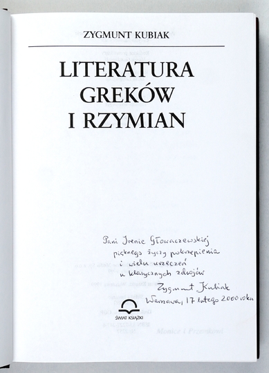 KUBIAK Zygmunt – Literatura Greków i Rzymian. Warszawa 1999. Świat Książki. 8, s. 655, [1]. or. oryg. kart.
