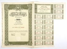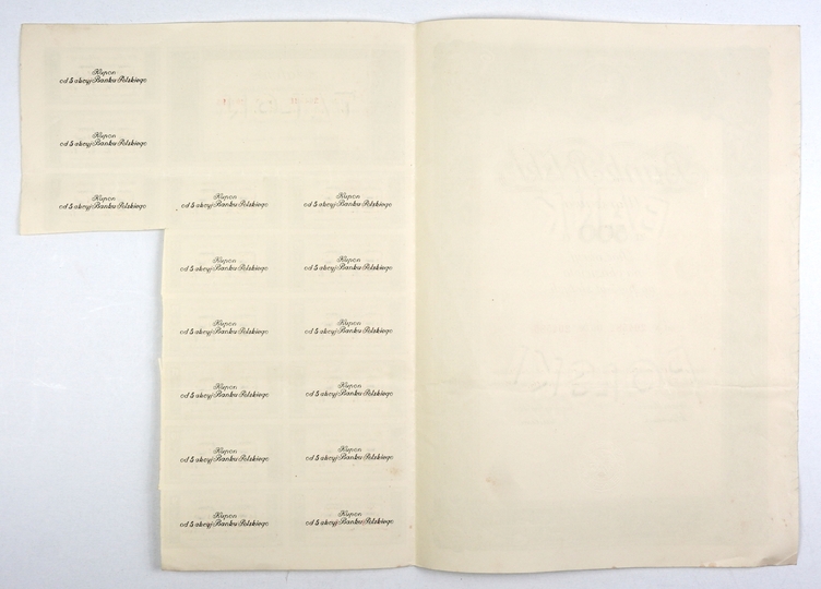 BANK Polski, Warszawa. zł 500. Pięć akcyj na okaziciela na pięćset złotych.