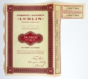 "LUBLIN", Cukrownia i Rafinerja, Spółka Akcyjna. 10 akcji wartości nominalnej po 100 zł. każda.