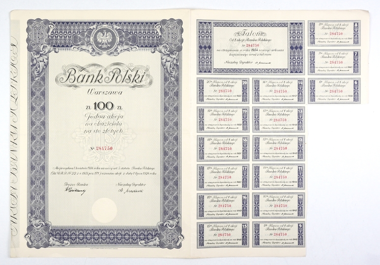 BANK Polski, Warszawa. zł 100. Jedna akcja na okaziciela na sto złotych.