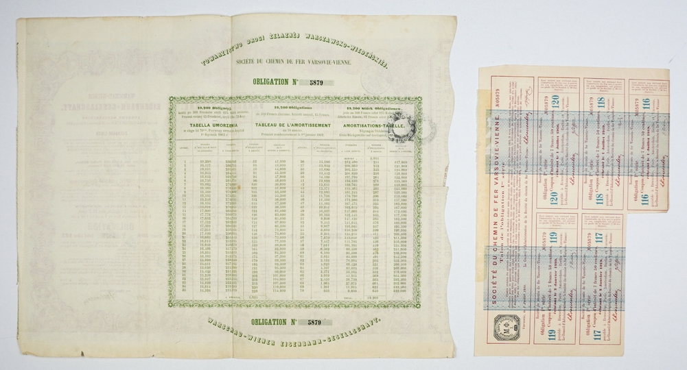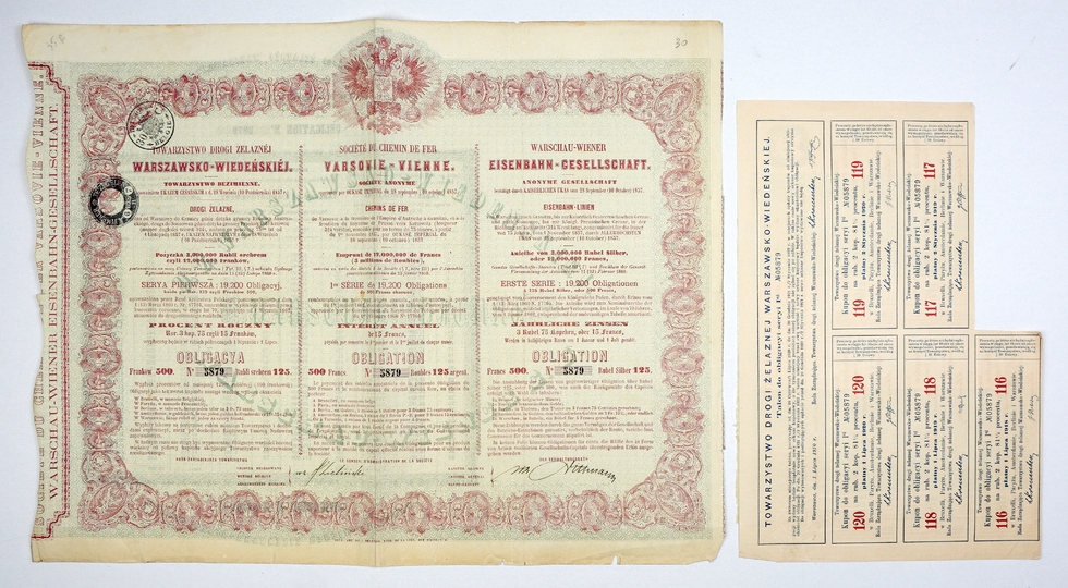 TOWARZYSTWO Drogi Żelaznej Warszawsko-Wiedeńskiej. Oblicagya Franków 500.