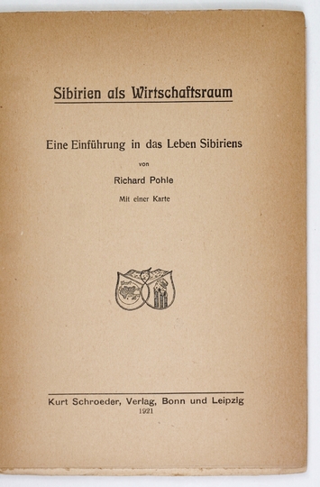 POHLE Richard – Sibirien als Wirtschaftsraum. Eine Einleitung in das Leben Sibiriens. Mit einer Karte. Bonn-Leipzig 1921. K. Schroeder Verlag. 8, s. VIII, 66. brosz. Geographie des Menschen- und Völkerlebens, Heft 1.