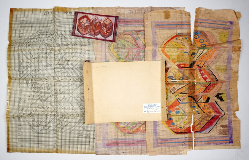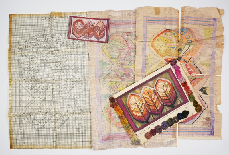 DOMAŃSKA Maria (ur. 1928) – Projekt gobelinu "Krzewy II" i materiały pomocnicze.