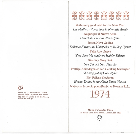 SOPOĆKO Konstanty Maria (1903-1992) – Odręczne życzenia noworoczne ozdobione rysunkiem tuszem.