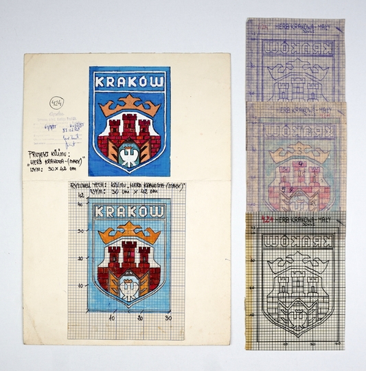 KIEBUŁA-ZAROBKIEWICZ Ewa (1944-2025) – Projekt gobelinu "Herb Krakowa (mały)".