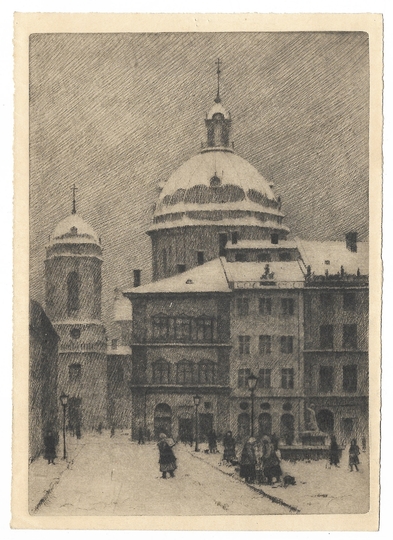 ŁOTOCKI Kazimierz (1882-1942) – Kościół Bożego Ciała we Lwowie w prześwicie ul. Stauropigijskiej.