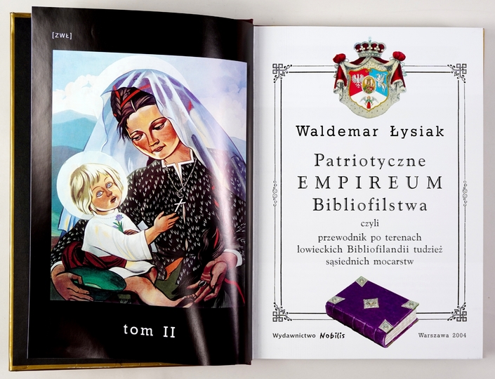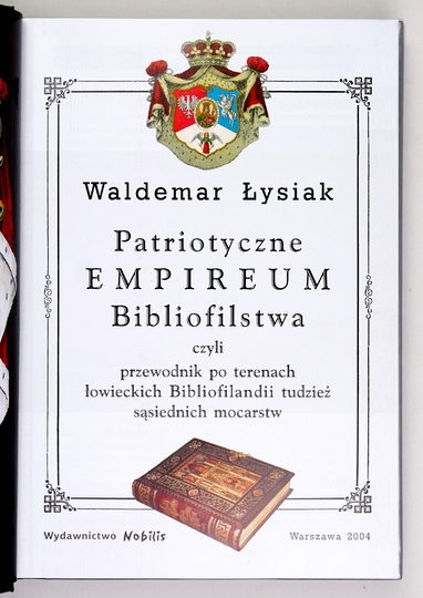 ŁYSIAK Waldemar – Patriotyczne empireum bibliofilstwa czyli przewodnik po terenach łowieckich Bibliofilandii tudzież sąsiednich mocarstw. Warszawa 2004. Wydawnictwo Nobilis. 4, s. 344; [345]-688. opr. oryg. psk., futerał kart.