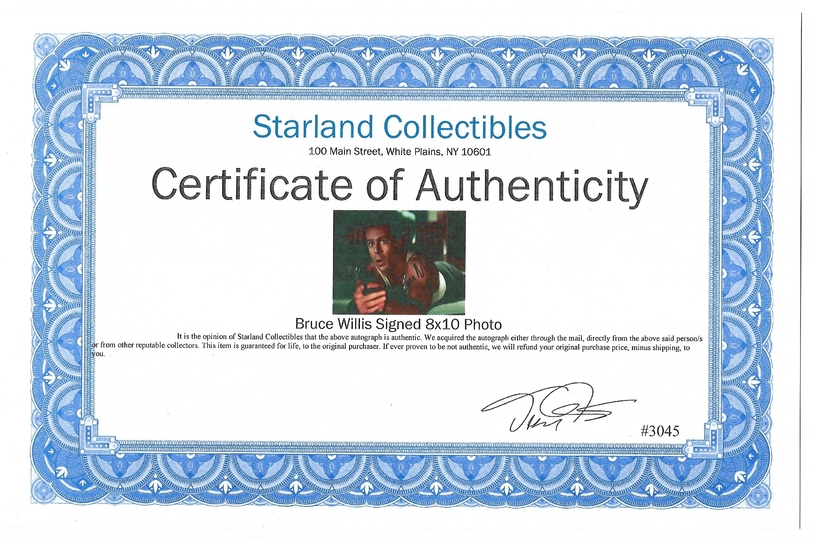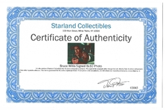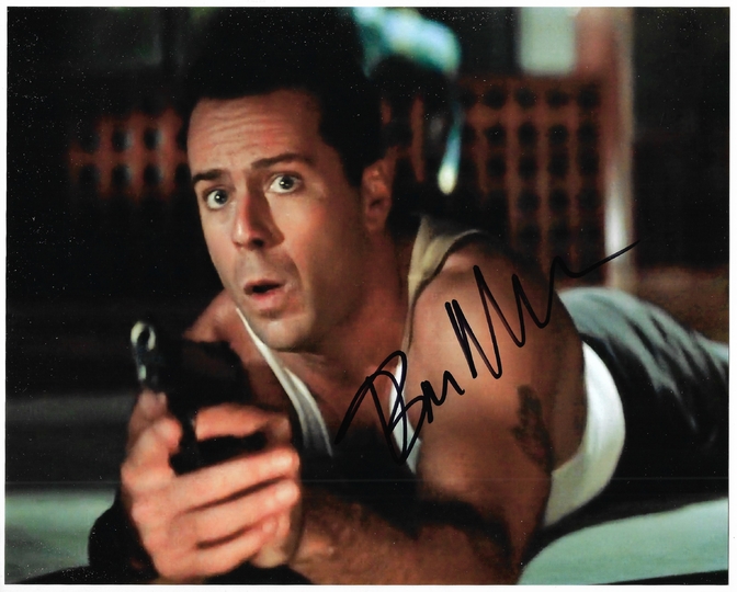 [WILLIS Bruce]. Podpis Bruce'a Willisa na barwnej fotografii z filmu "Szklana pułapka" z 1988.