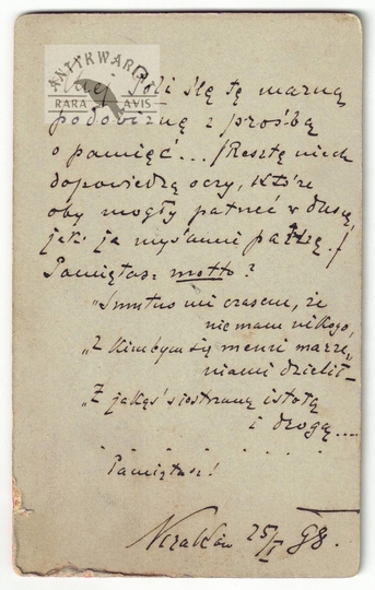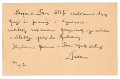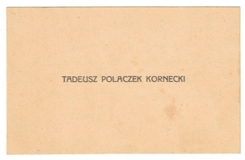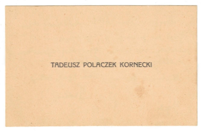 [POLACZEK-KORNECKI Tadeusz]. Odręczne podziękowania za życzenia od Tadeusza Polaczka-Korneckiego na jego bilecie wizytowym, dat. 31 X 1930?