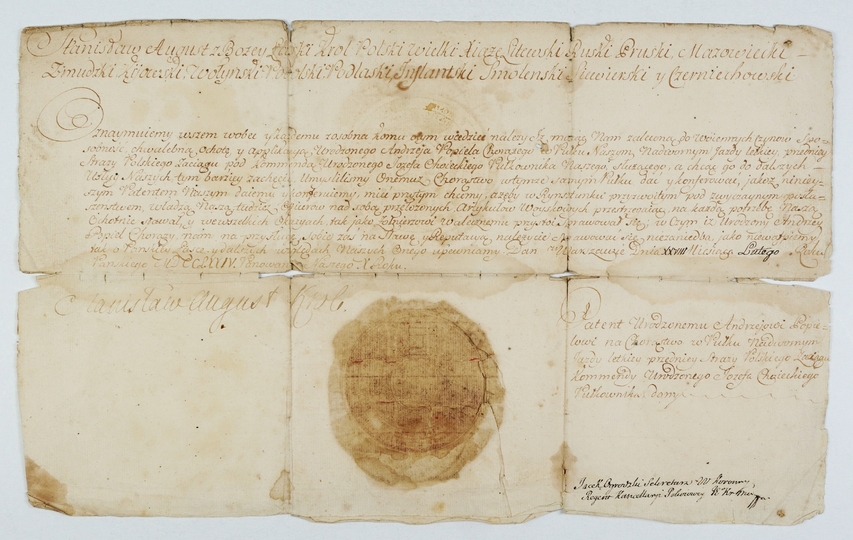[STANISŁAW August Poniatowski]. Rękopiśmienny dokument królewski na papierze, po polsku, podpisany przez króla, dat. 28 II 1774 w Warszawie.