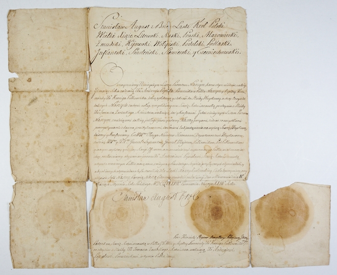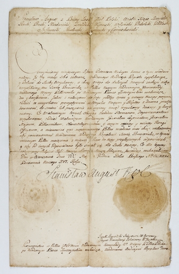 [STANISŁAW August Poniatowski]. Rękopiśmienny dokument królewski na papierze, po polsku, podpisany przez króla, dat. 3 XII 1779 w Warszawie.