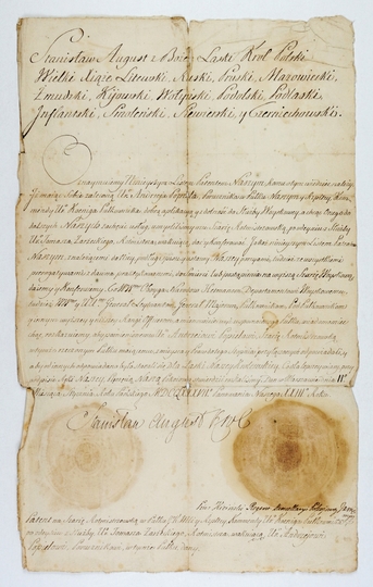 [STANISŁAW August Poniatowski]. Rękopiśmienny dokument królewski na papierze, po polsku, podpisany przez króla, dat. 2 I 1787 w Warszawie.