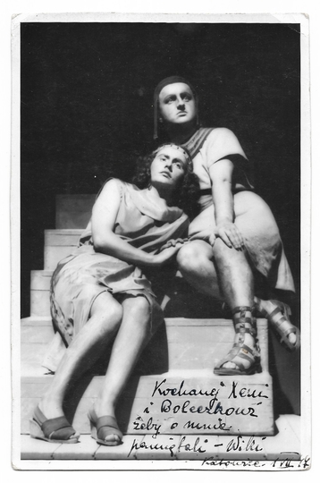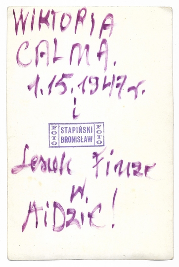 [CALMA Wiktoria (Vittoria)]. Odręczna dedykacja Wiktorii Calmy na zdjęciu z przedstawienia operowego w 1947.
