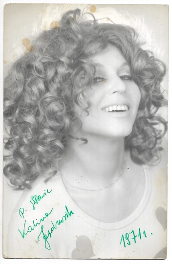 [JĘDRUSIK Kalina]. Odręczna dedykacja Kaliny Jędrusik z 1971 na zdjęciu portretowym.