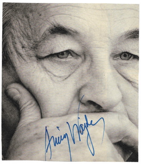 [WAJDA Andrzej]. Podpis Andrzeja Wajdy na czarno-białej fotografii wyciętej z niemieckojęzycznego czasopisma.