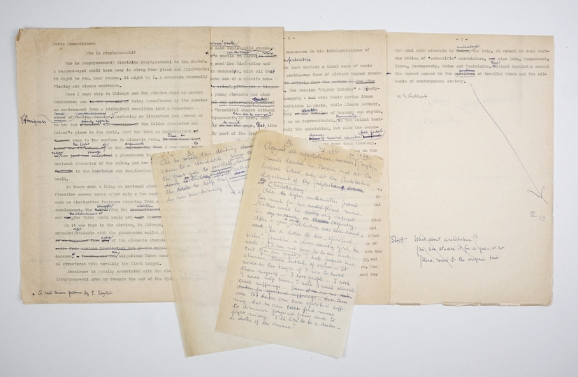 [KUNCEWICZOWA Maria]. Artykuł Marii Kuncewiczowej "Who Is Przybyszewski?" w autorskim maszynopisie (9 k.) i rękopisie (2 k.) - tekst przeznaczony był do publikacji w "Studiach Filozoficznych"; późne lata 70.?
