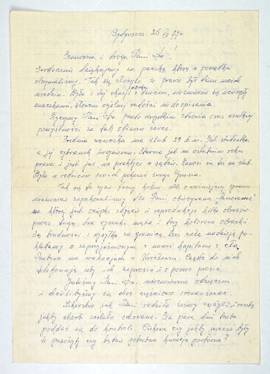 [OCIEPKA Julia]. Odręczny list Julii (Julianny) Ociepki w imieniu własnym i męża do nieznanej adresatki w Anglii, dat. 25 VII 1977 w Bydgoszczy.