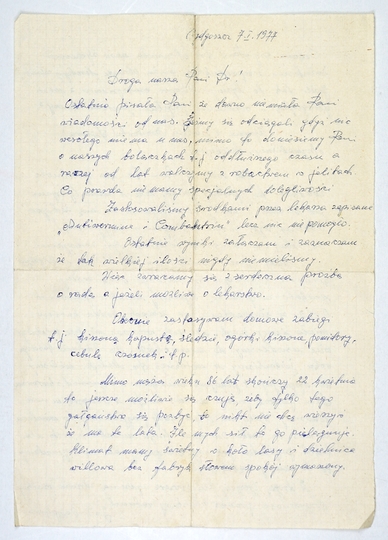 [OCIEPKA Julia]. Odręczny list Julii (Julianny) Ociepki w imieniu własnym i męża do nieznanej adresatki w Anglii, dat. 7 I 1977 w Bydgoszczy.