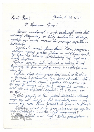 [OCIEPKA Teofil]. Odręczny list Teofila Ociepki do nieznanej adresatki w Anglii z dopiskiem Julii Ociepkowej, datowany 29 II 1966 w Janowie.