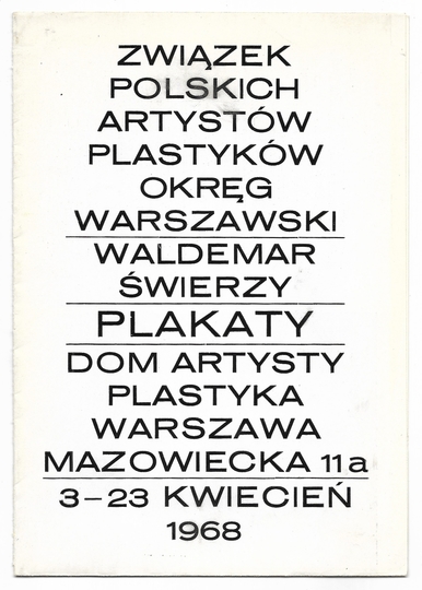 [ŚWIERZY Waldemar]. Podpis Waldemara Świerzego na katalogu wystawy jego prac z 1968.