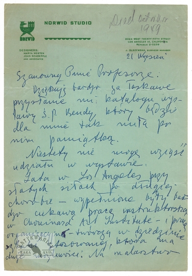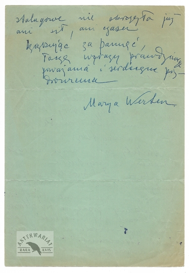 [WERTEN Maria]. List odręczny Marii Werten do niewymienionego z nazwiska profesora, dat. 21 IX (późne lata 40. XX w.?).