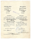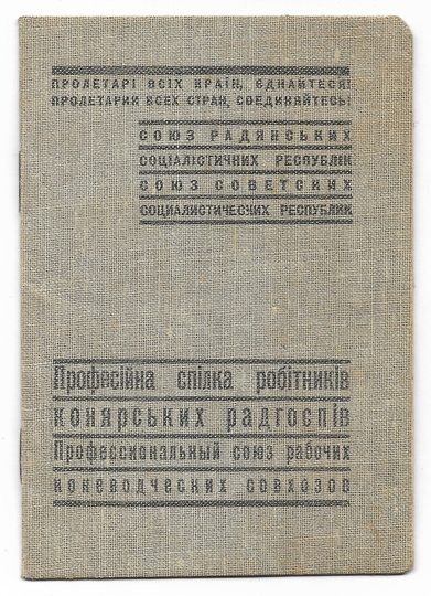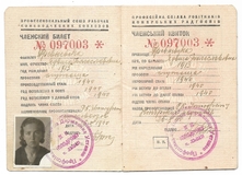 ČLENSKYJ Kvytok. Profesijna Spilka Robitnykiv Konjarskych Radgospiv. Dokument wystawiony Jadwidze Drewniewskiej dn. 26 X 1940 we Lwowie.
