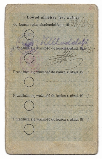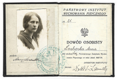 DOWÓD osobisty wydany studentce Annie Łachockiej przez Państwowy Instytut Wychowania Fizycznego w Warszawie na rok akademicki 1927/1928.