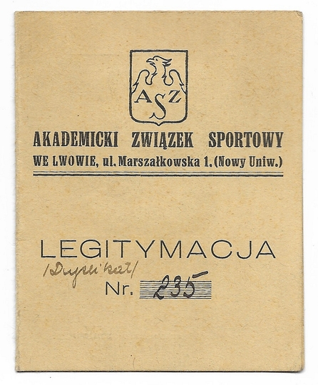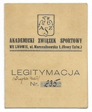 LEGITYMACJA. Akademicki Związek Sportowy we Lwowie. Legitymacja Jadwigi Drewniewskiej wydana 1 II 1936 we Lwowie.