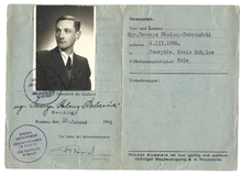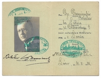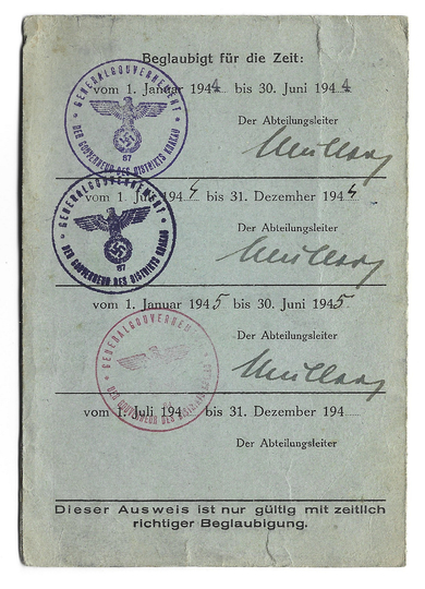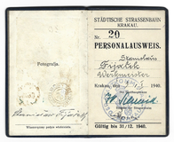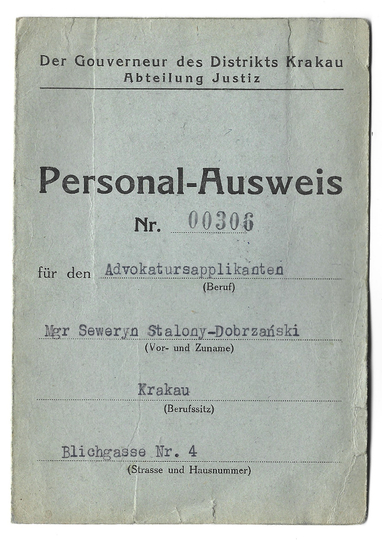 PERSONAL-AUSWEIS wystawiony Sewerynowi Stalony-Dobrzańskiemu, aplikantowi adwokackiemu, dn. 15 I 1944 w Krakowie.
