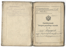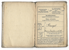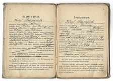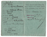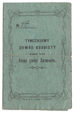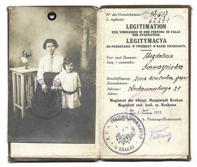 LEGITYMACJA do pozostania w twierdzy w razie ewakuacyi - wystawiona Magdalenie Soroczyńskiej, żonie kontrolera gazowego, 1 IV 1915 w Krakowie.