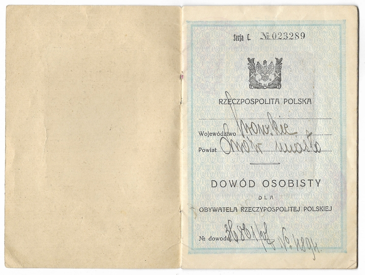 DOWÓD osobisty dla obywatela Rzeczypospolitej Polskiej wystawiony Bolesławowi Drewniewskiemu, dyrektorowi zakładu ubezpieczeniowego, dn. 5 VIII 1927 we Lwowie.