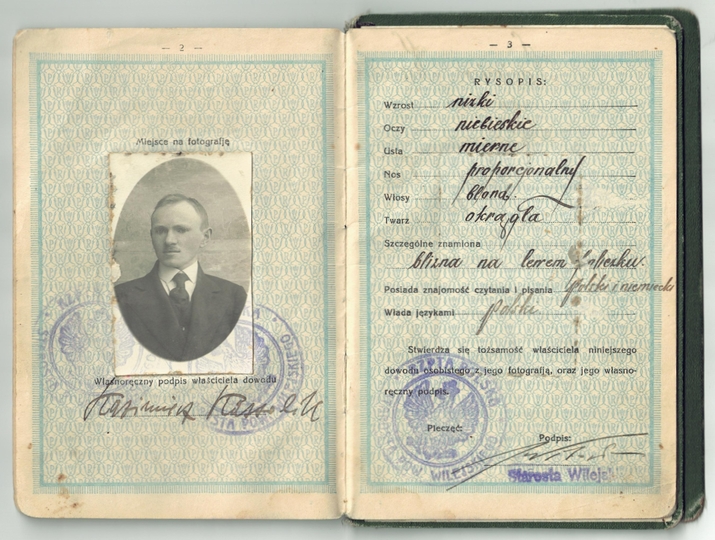DOWÓD osobisty dla obywatela Rzeczypospolitej Polskiej wystawiony Kazimierzowi Kassolikowi, urzędnikowi, dn. 8 VIII 1924 w Wilejce.
