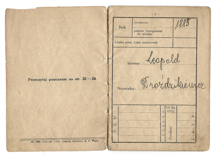 KSIĄŻECZKA wojskowa Leopolda Droździkiewicza wystawiona 5 IV 1923 w Krakowie.