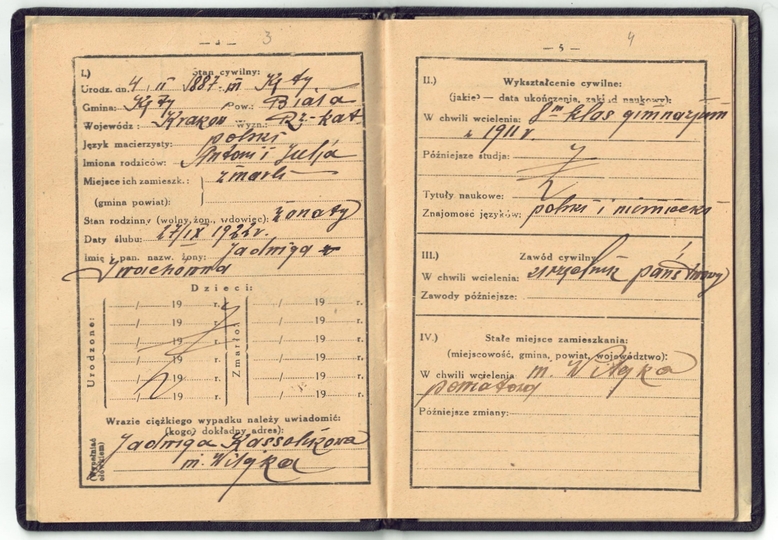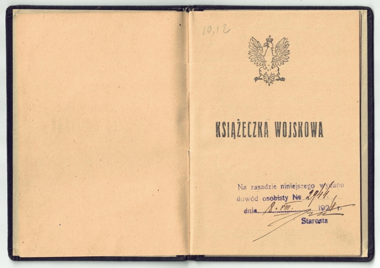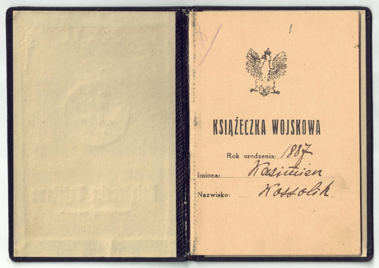 KSIĄŻECZKA wojskowa wystawiona Kazimierzowi Kassolikowi, urzędnikowi państwowemu, dn. 18 IV 1923 w Wilejce, Powiatowa Komenda Uzupełnień Mołodeczno.