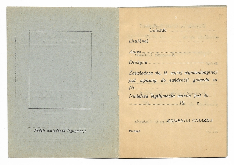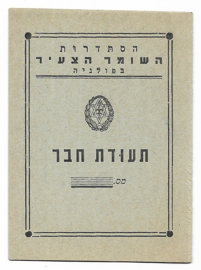 LEGITYMACJA Organizacji Haszomer Hacair w Polsce - niewypełniony blankiet legitymacyjmy.