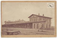 [CIESZYN - dworzec kolejowy - fotografia widokowa]. [nie przez 1889]. Fotografia form. 9,8x15,9 cm na oryg. podkładzie form. 11,1x16,77 cm, nieznanego autorstwa.