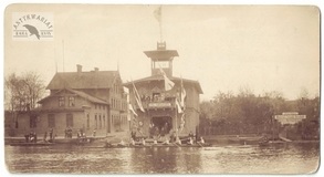 [ELBLĄG - przy przystani klubu wioślarskiego "Vorwaerts" ["Naprzód"] - fotografia sytuacyjna, widokowa]. [ok. 1900]. Fotografia form. 11,8x22,1 cm, wykonana w atelier Lorenza Basiliusa w Elblągu.