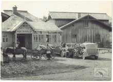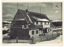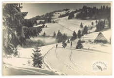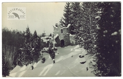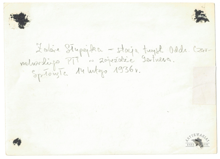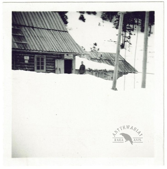 [GÓRY - Karpaty - Beskidy Wschodnie - Czarnohora - Żabie-Słupejka - stacja turystyczna PTT w zajeździe Gertnera - fotografia widokowa, sytuacyjna]. [nie po 14 II 1936]. Fotografia form. 13,1x18,1 cm, autorstwa [Wł[odzimierza] Sawczyńskiego].