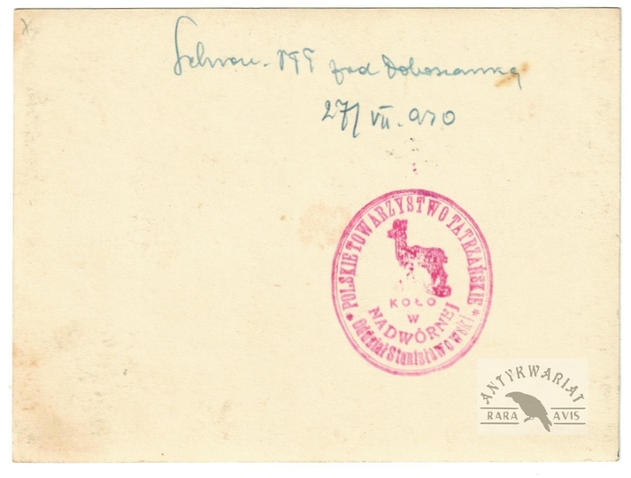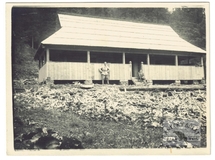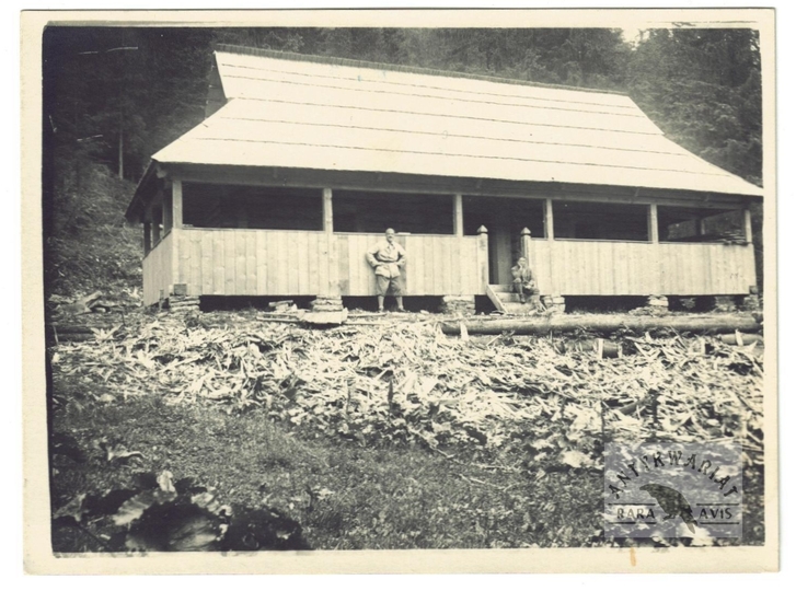 [GÓRY - Karpaty - Beskidy Wschodnie - Gorgany - nieistniejące schronisko na Niżnej pod Doboszanką - fotografia widokowa, sytuacyjna]. [27 VII 1930]. Fotografia form. 8,9x12 cm.