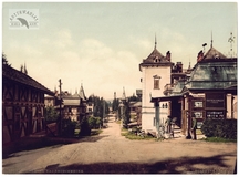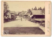 [GÓRY - Karpaty - Tatry - Zakopane - ul. Kościeliska - fotografia widokowa - ujęcie w formacie gabinetowym]. [l. 80./90. XIX w.]. Fotografia form. 11,6x14,6 cm na oryg. podkładzie form. 12,8x17,8 cm, autorstwa Stanisława Bizańskiego.