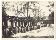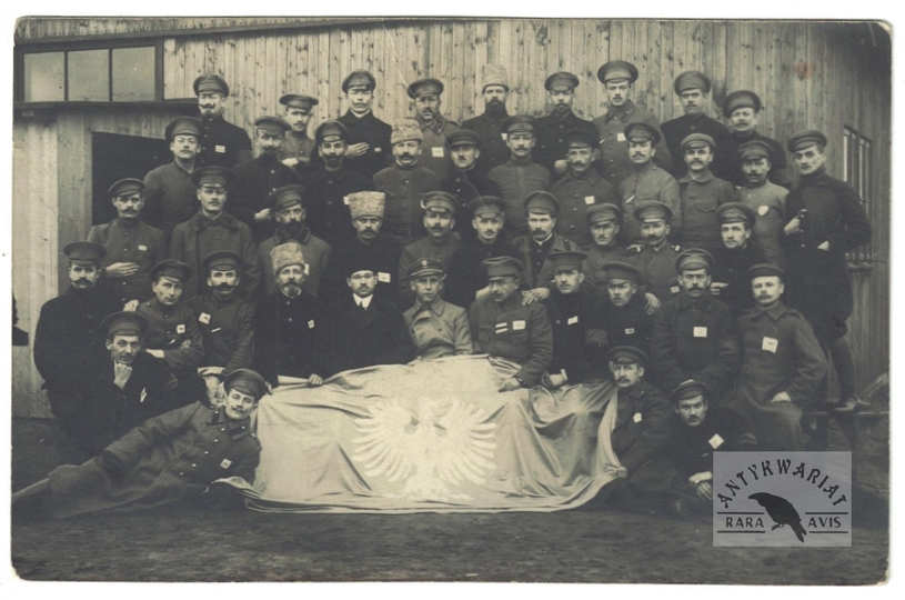 [WOJSKO Polskie - oswobodzeni jeńcy Polacy - fotografia zbiorowa]. [1920?]. Fotografia form. 8,9x13,8 cm.