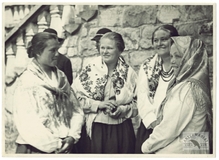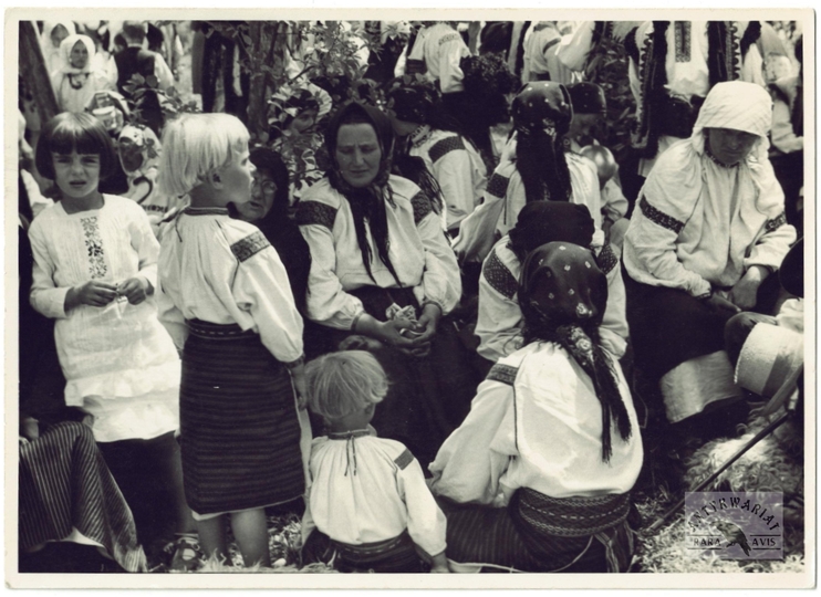 [HUCULSZCZYZNA - Kosów - Hucułki na odpuście - fotografia sytuacyjna]. [nie przed 1936, nie po 1939]. Fotografia form. 13x18 cm, autorstwa Mieczysława Dobija.
