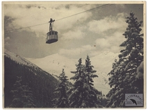 [GÓRY - Karpaty - Tatry - Kolejka linowa Kuźnice - Kasprowy Wierch - fotografia widokowa]. [l. 30. XX w.]. Fotografia form. 17,7x23,7 cm, autorstwa T[adeusza] i S[tefana] Zwolińskich w Zakopanem.
