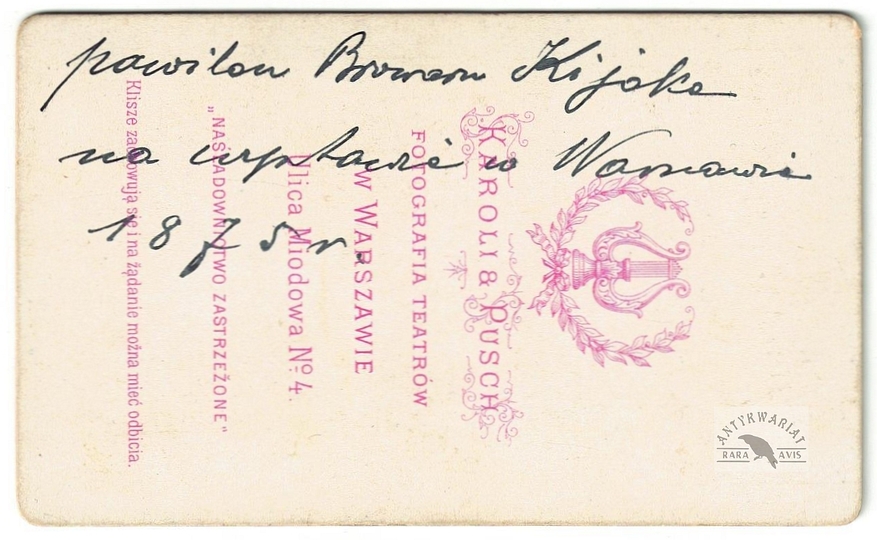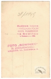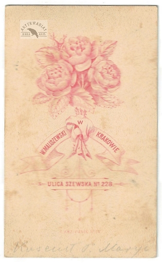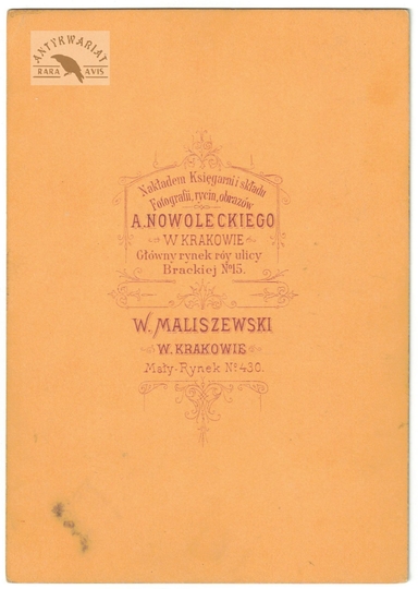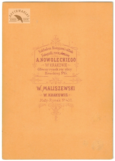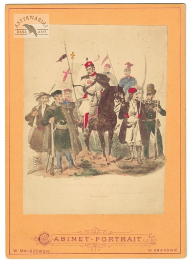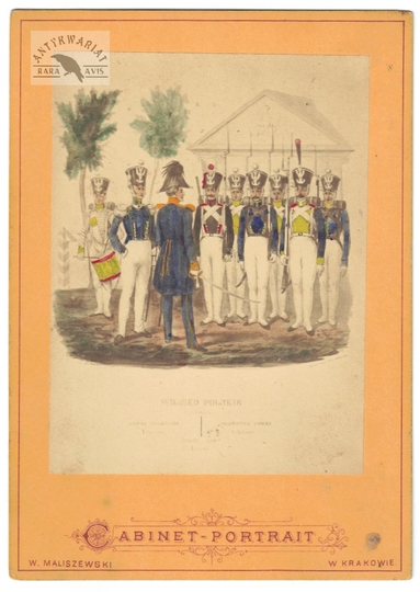 [WOJSKO Polskie Księstwa Warszawskiego i Królestwa Kongresowego - "Piechota" - ujęcie w formacie wizytowym]. [l. 60. XIX w.]. Fotografia form. 11,5x8,7 cm na oryg. podkładzie form. 15,7x11,1 cm, wykonane w atelier W[alerego] Maliszewskiego w Krakowie.