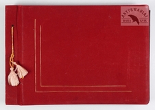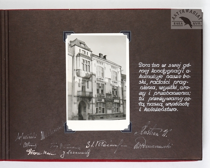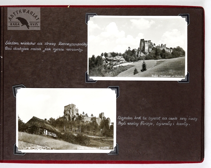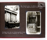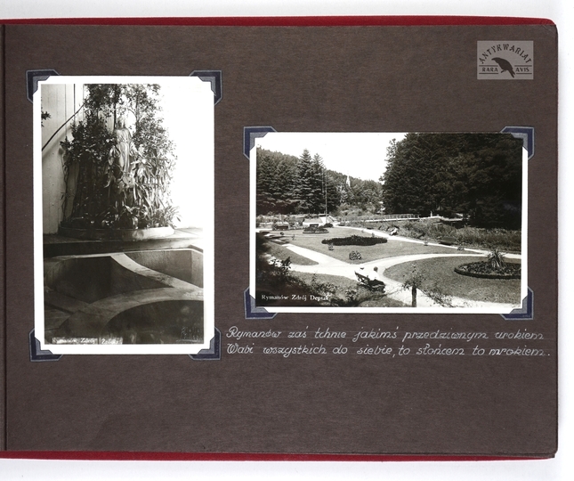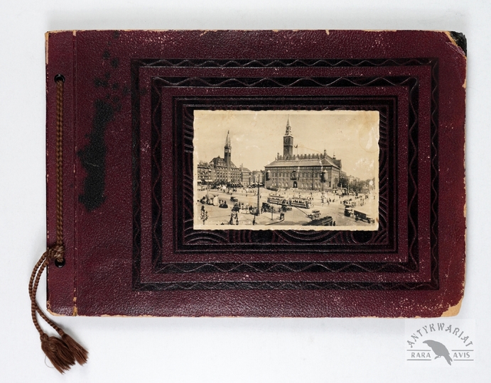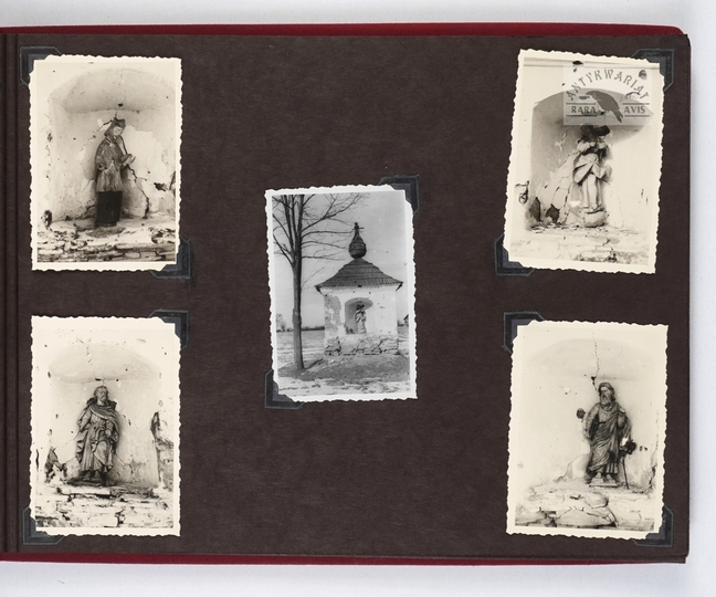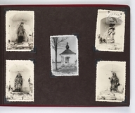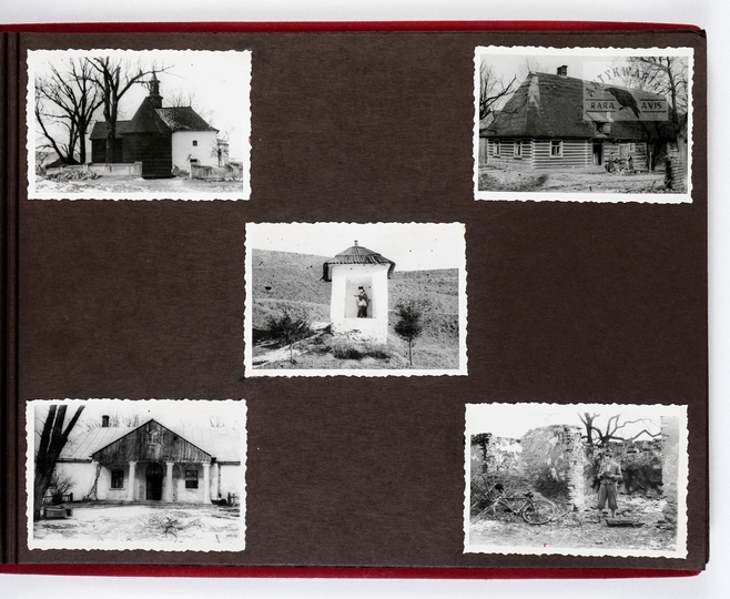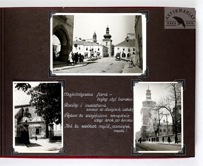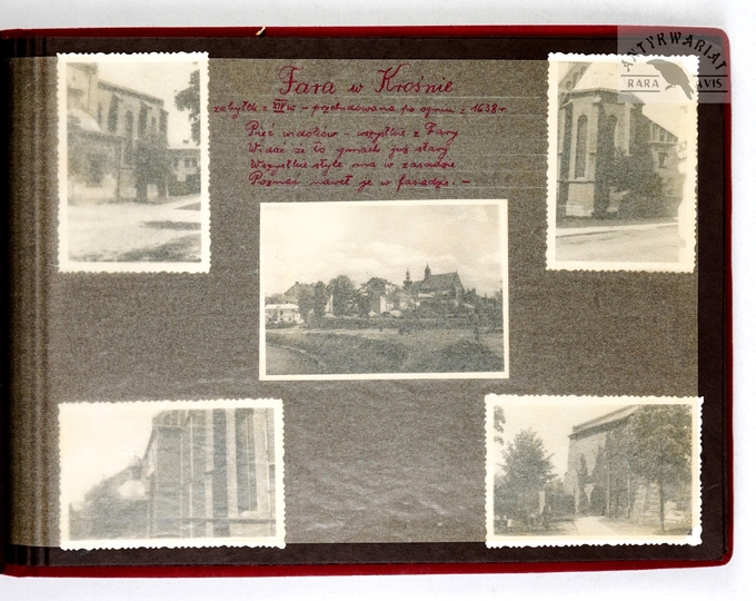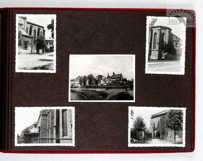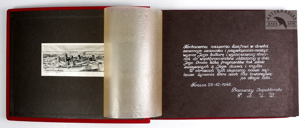 [KROSNO i okolice - album pamiątkowy dla szefa inspektoratu Państwowych Zakładów Ubezpieczeń Wzajemnych w Krośnie - fotografie widokowe]. [1943, 1945]. Album z 43 fotografiami form. ca 9x14 cm, 10x7 cm, wykonane przez atelier Rudolfa Kaska w Krośnie.
