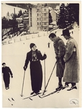 [KRYNICA - holenderska księżniczka Juliana z mężem księciem Bernhardem Lippe-Biesterfeld – na nartach na stoku w Krynicy Zdroju - fotografia prasowa, sytuacyjna]. [I 1937]. Fotografia form. 23,3x17,6 cm, wykonana na zlecenie Agencji Keystone.