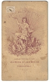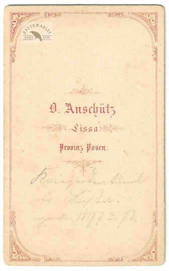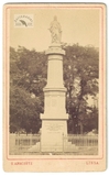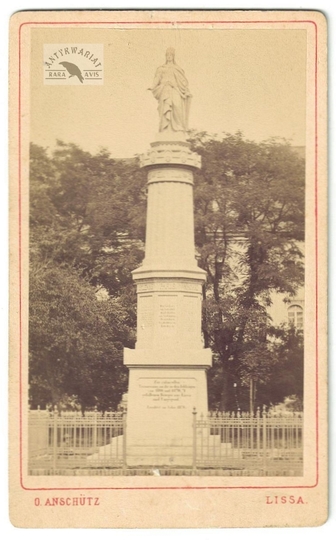 [LESZNO - nieistniejący pomnik Germanii - fotografia widokowa - ujęcie w formacie card de visite]. [2. poł. XIX w.]. Fotografia form. 8,6x5,3 cm na oryg. podkładzie form. 10x6,2 cm, autorstwa O[ttomara] Anschütza w Lesznie (Lissa).