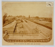 [LWÓW - Stary Dworzec Lwowski - fotografia widokowa w dużym formacie]. [l. 60./70. XIX w.]. Fotografia form. 20x25 cm na oryg. podkładzie form. 22x26 cm, nieznanego autorstwa.